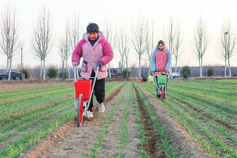 图② 2月5日,尉氏县邢庄乡农民在对小麦追施化肥。李新义 摄